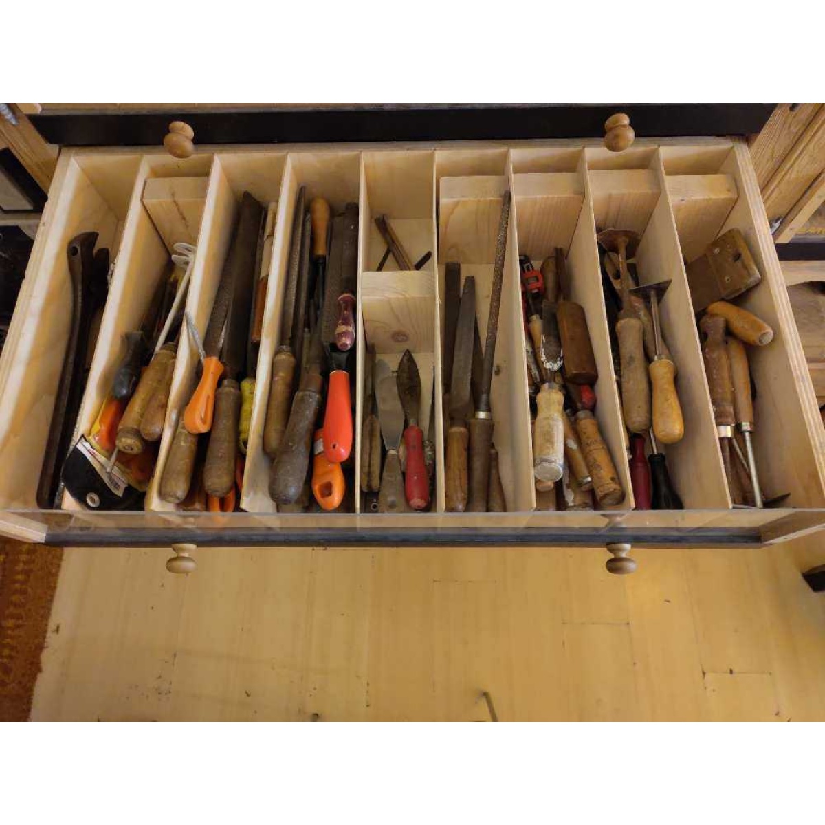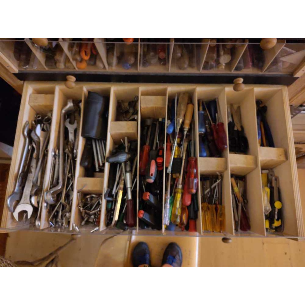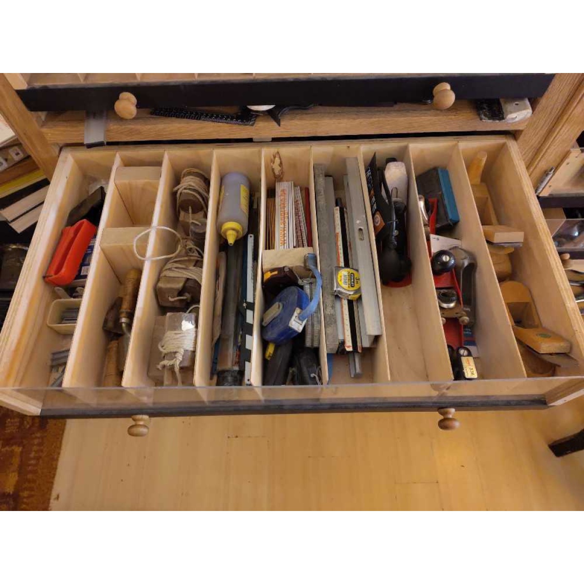 Allerlei klein gereedschap; snuister eens door onze schuiven of vraag naar wat je nodig hebt in de klusbib.